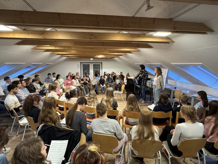 Full House in der Jugendherberge Heide: “Doo – Doo – Doo” wechselte sich ab mit “Joy to the World” oder Millionen von Träumen (“Million Dreams”). Mittelstufenchor (Lt. Marie Krawietz / Joscha Enger) und Oberstufenchor (Ltg. Lisa Petersen / Torsten Allwardt) waren mit rund 65 Sängerinnen und Sängern unterwegs und brachten die Jugendherberge Heide einzeln und zusammen zum klingen. Von Montag bis Mittwoch direkt nach den Herbstferien war dies sicherlich ein musikalischer Start in das Weihnachtssemester und zu Hören sind die Ergebnisse beim Weihnachtskonzert am Dienstag, 10. Dezember um 19:30 Uhr in der Pausenhalle.