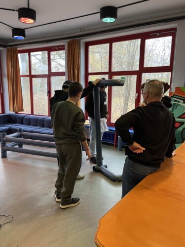 Dort konnten 24 Jugendliche aus den Jahrgängen 9 und 10 hautnah Tätigkeiten des Berufs SHK ausprobieren: es wurde ein Bad am i-pad entworfen, eine Gartenbank aus Abwasserrohren gebaut, eine Fußbodenheizung verlegt und Kupferrohre bearbeitet. Zwischendurch gab es allerlei Wissenswertes zum Beruf und zum Handwerk im Allgemeinen.