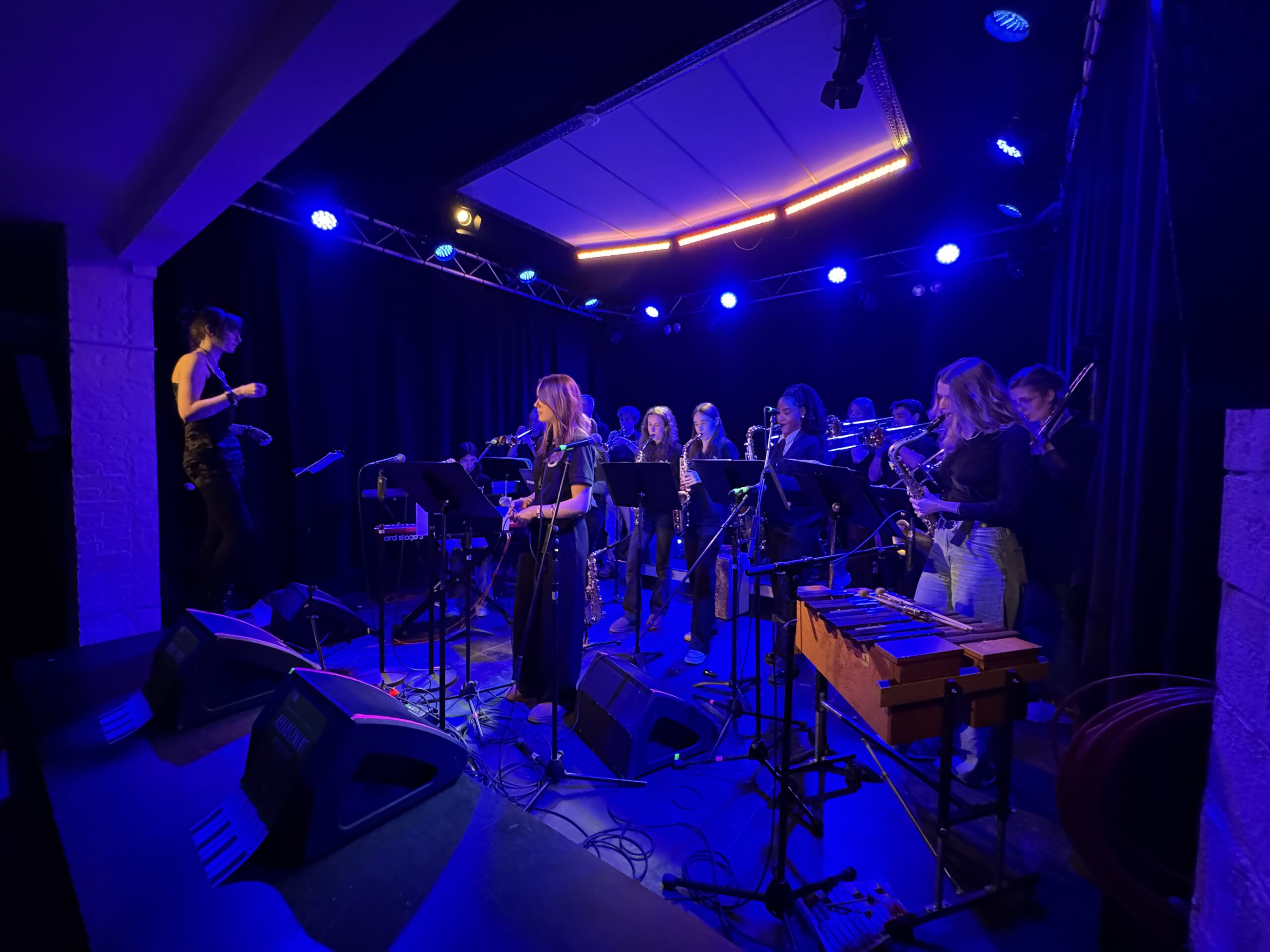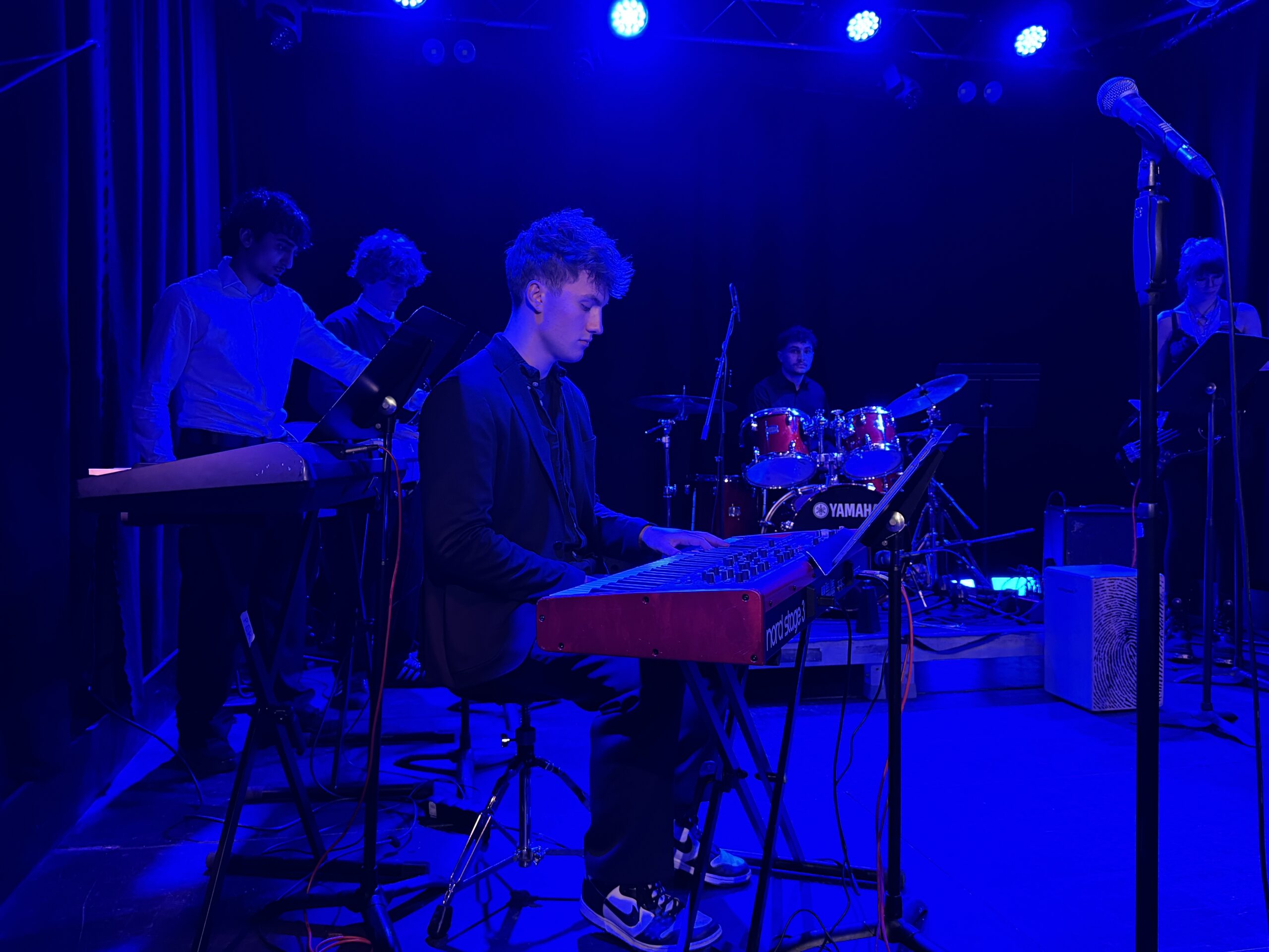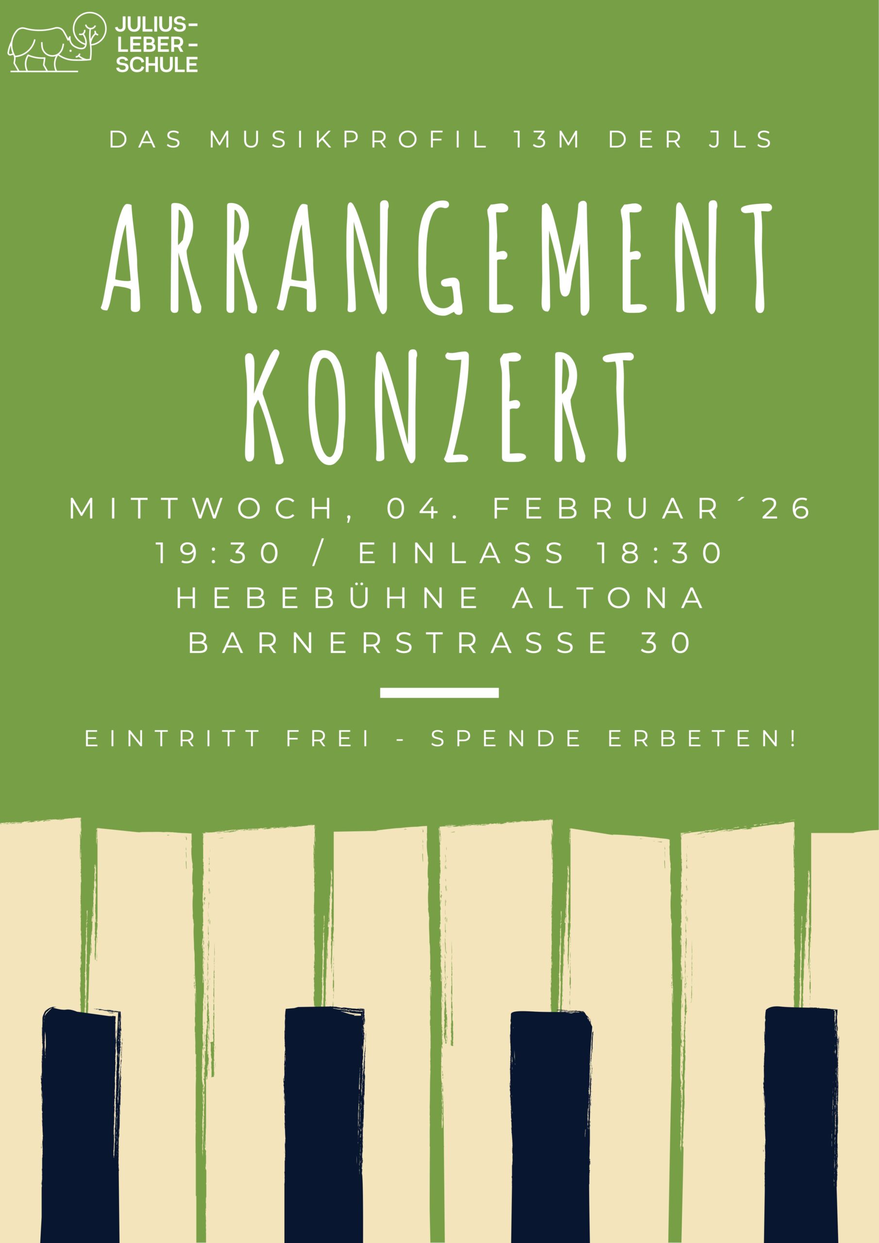 “Treasure” von Bruno Mars bildete den Abschluss eines gut 90minütigen Konzertes des Musikprofil 13M unter der Leitung von Musiklehrer Torsten Allwardt. Jeder Schüler und jede Schülerin der 13M hatte im Semester 3 einen Song ihrer Wahl für eine selbst gewählte Besetzung arrangiert: Partituren entstanden, unzählige Proben wurden abgehalten, Schüler*innen aus anderen Profilen dazu geholt. Der Lohn war ein grandioses Konzert in der Hebebühne in Altona am Mittwoch, 04. Februar 2026.